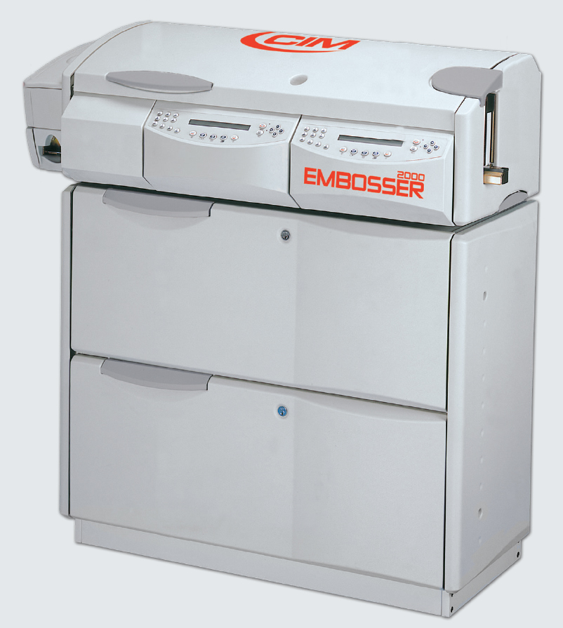 | Drum capacity | Drum capacity: 2x105 characters, embossing and/or infill. |